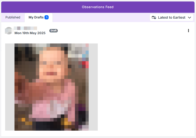 When saved as a draft, your observation will be stored in the My Drafts tab of the Observation feed: