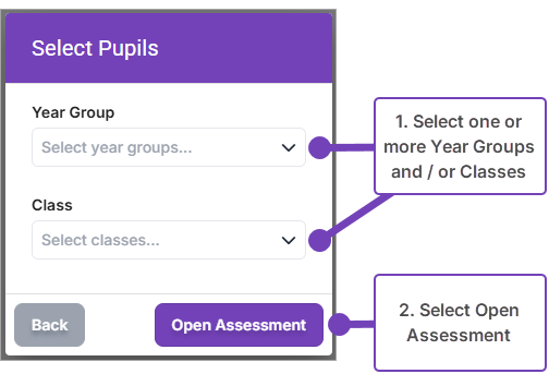 - Select one or more Year Groups and / or Classes for which you wish to enter test results.
