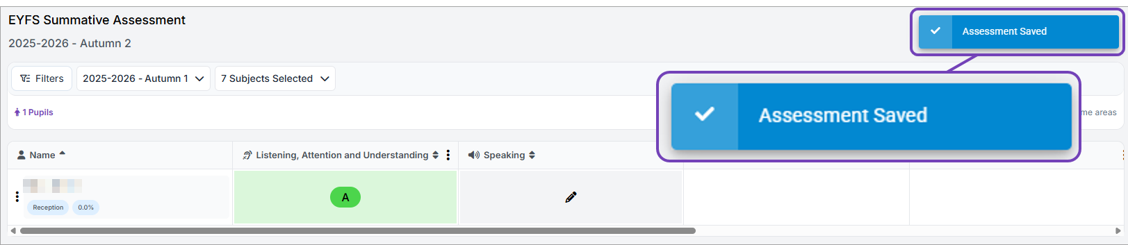 - Select EYFS Summative Assessment (New) from the Teacher Assessments list.