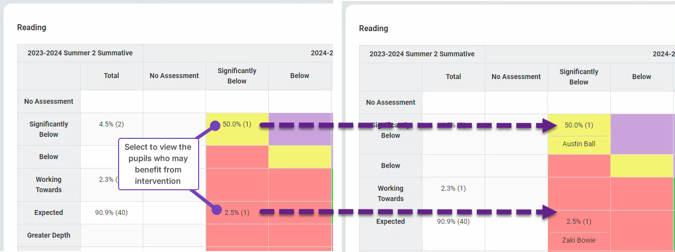These reports and your knowledge of individual pupils will help you identify those who may benefit from interventions. The Assessment Conversion Matrix is a great visual tool to use when discussing progress with individual pupils.