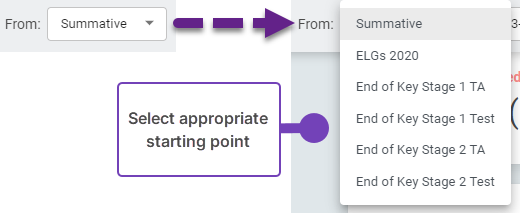 Select a different start point from the From menu, for example, with a Year 4 cohort you may want to look at progress from ELGs (ELGs 2020):