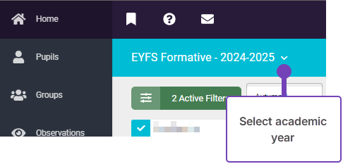 - From within any assessment page, select the academic year, for example, 2024-2025 next to the assessment page title: