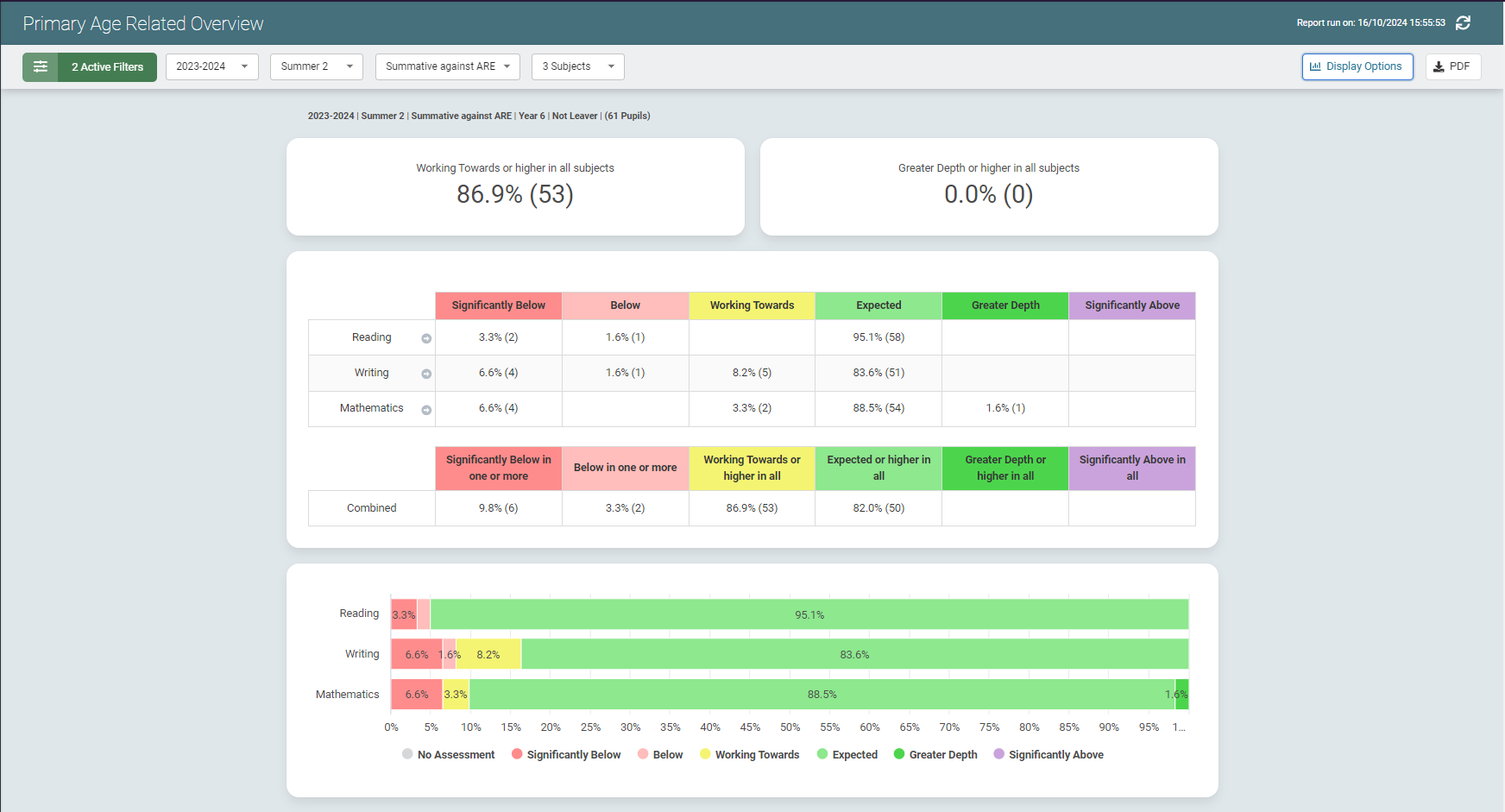 This article explains how to configure and use the Sonar Tracker: Primary Age Related Overview Report to view those pupils currently on track for Combined RWM. You can quickly see which pupils are on track at this point in time and determine which pupils could benefit from being allocated additional support in one or more subjects.