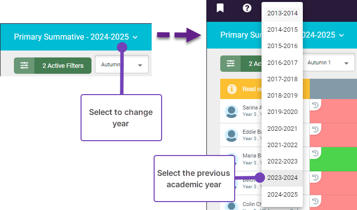 - Select the previous academic year: