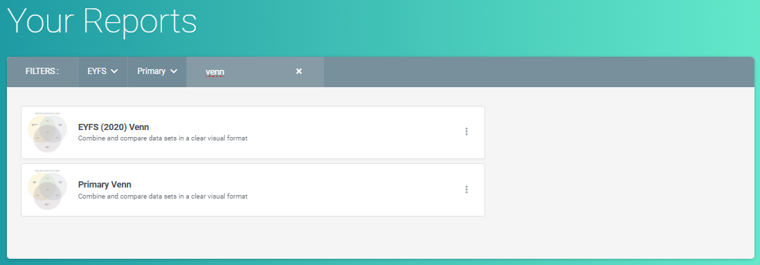 - Select the EYFS (2020) Venn or Primary Venn diagram report based on your need: