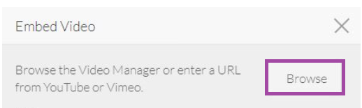- Select Browse to open the Video Manager: