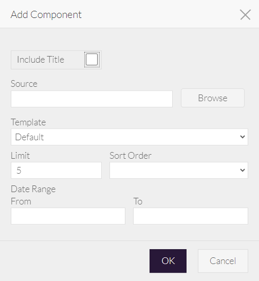 - Optionally, to only show news items /blog posts within a specific date range, set the Start and End date (otherwise leave them blank).