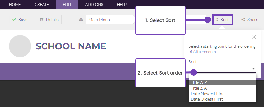 - Alternatively, select Sort on the Page Editing toolbar to select a different way to automatically sort the pages: