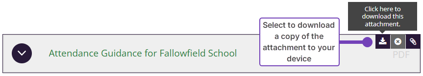 - Hover your mouse cursor over the attachment to view the attachments menu.