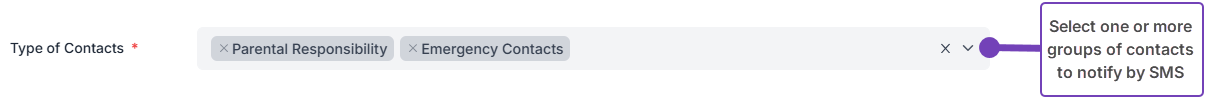 - Select the Type of Contacts you want to send the message to. You can select more than one contact type: