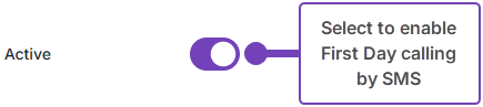 - To enable First Day calling by SMS, select Active: