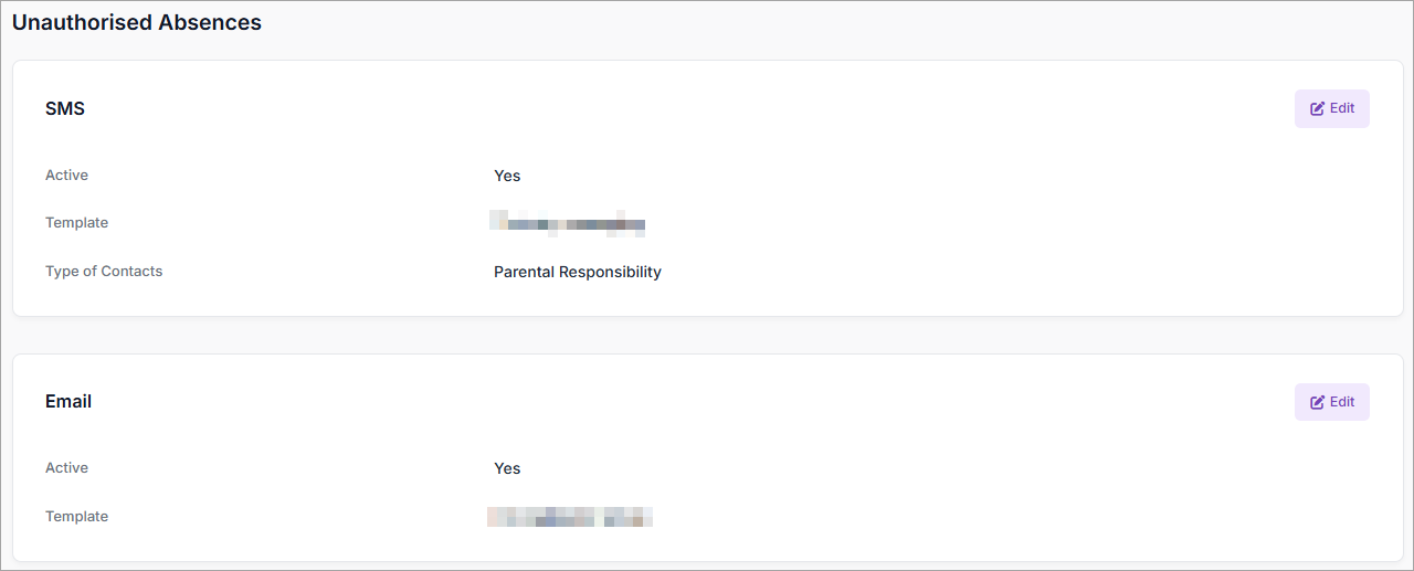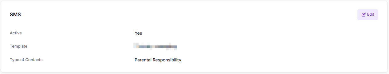 - In the SMS pane, select Edit to open Edit Attendance SMS: