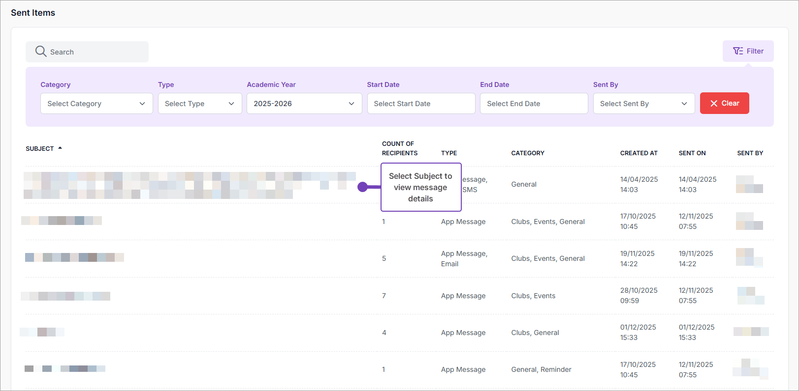 From the Recipients tab, you can review the list of recipients and whether the message has been successfully sent to them by app message, email and / or SMS.