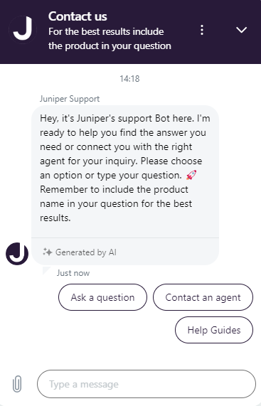 Selecting Ask a question, you can type your question into the message field, and the chat bot quickly will try to find an answer for you.