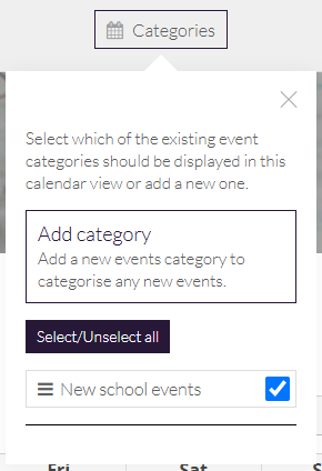 - Make sure the category that your external events are pulling into is selected. Check it as appropriate.