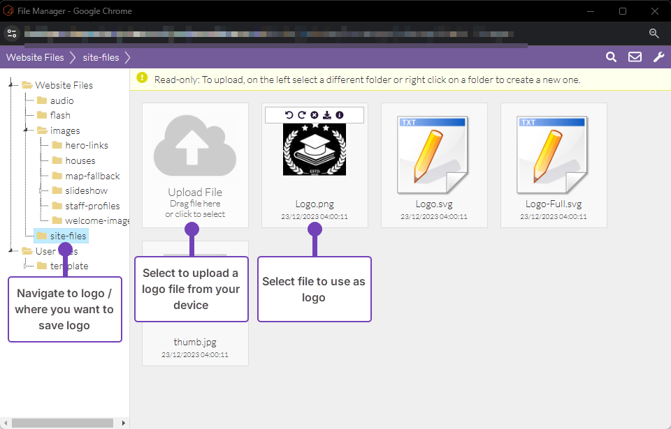 If this functionality isn't available in your website solution, for example, if you have one of our Essential websites, and you want to change your logo, contact us to discuss.