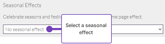- You must be an administrator to add and change the Seasonal Effects available on your website.