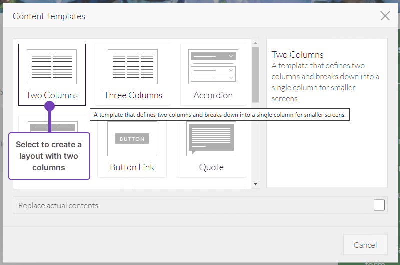 - Select the area of the page where you want to add your columns