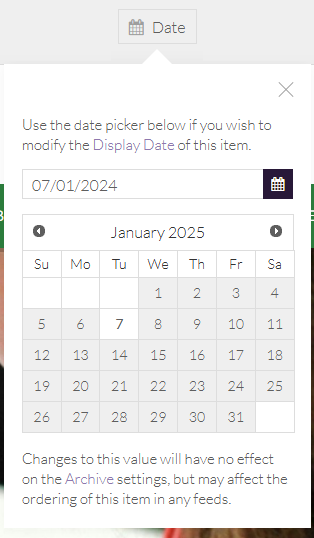 - Select the new Display Date using the calendar, or enter the date in DD/MM/YYYY format.