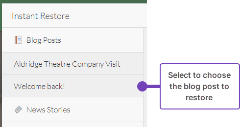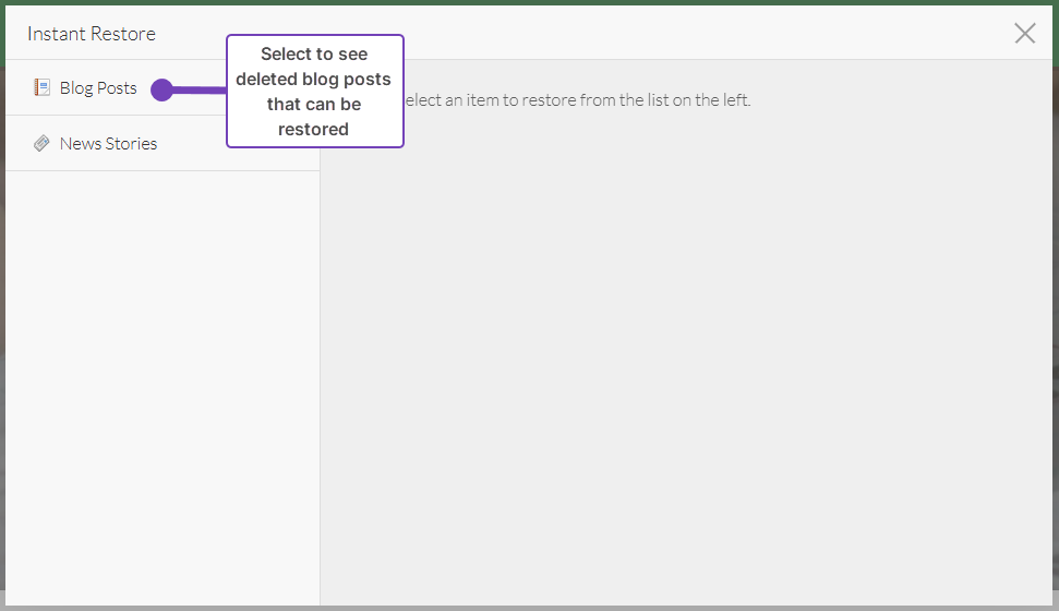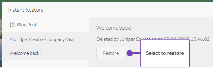 This article explains how to use the Instant Restore feature to restore a blog post that has been deleted.