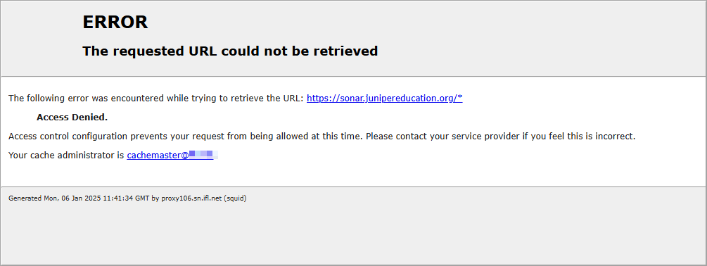 This article explains what to do if you receive the following The requested URL could not be retrieved message: