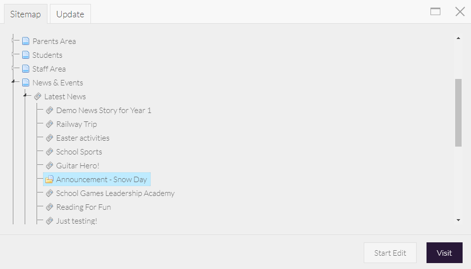 Once a page/item has been archived, it won't be visible in the navigation menu. This article explains how to access and republish your archived items from the Sitemap View.