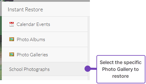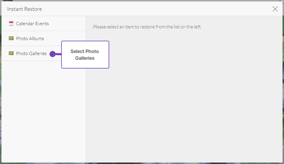 This article explains how to use the Instant Restore feature to restore (undelete) a photo gallery and optionally any photo albums within it that have been deleted.