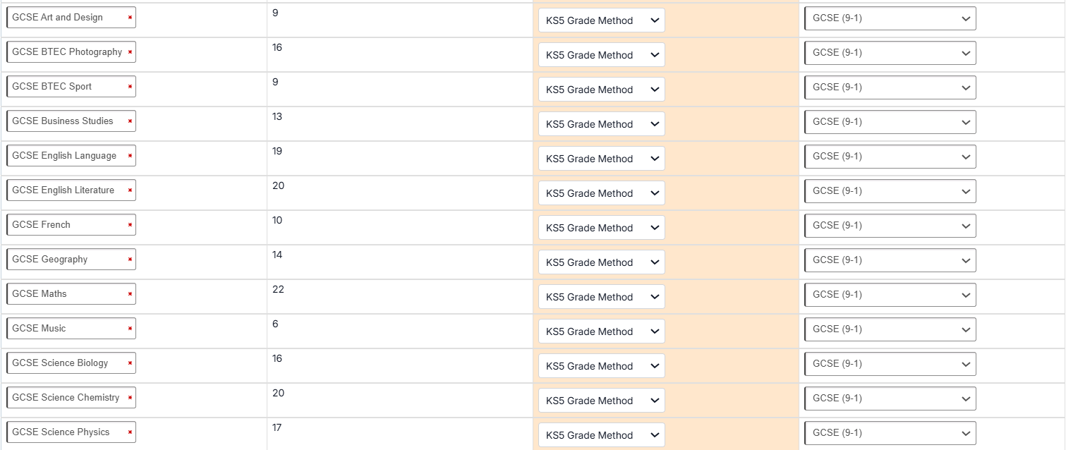 However, the grades uploaded in my Current Yr 13 cohort use a different incompatible grade method - in this case they have been uploaded in GCSE format.