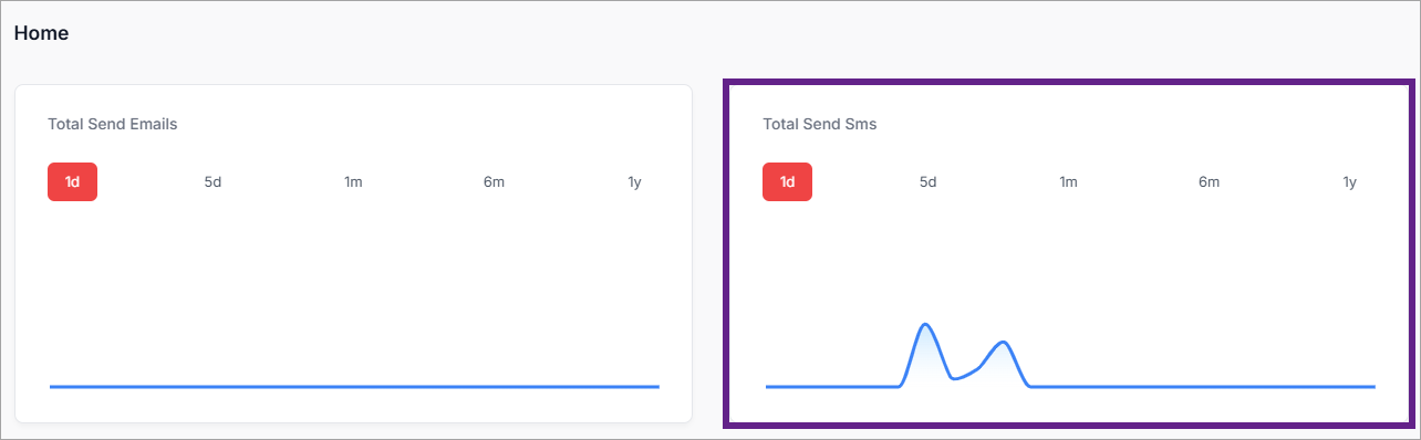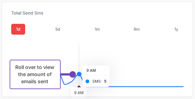 - Select 1d, 5d, 1m, 6m, 1y to view how many SMS you have sent. By default, this is set to 1d (One day):