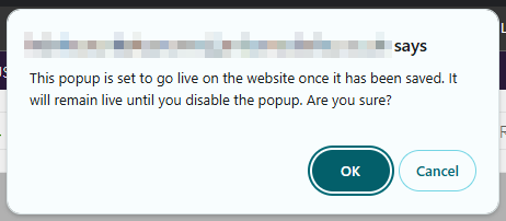 11. Select OK to confirm you understand the popup will now go live:
