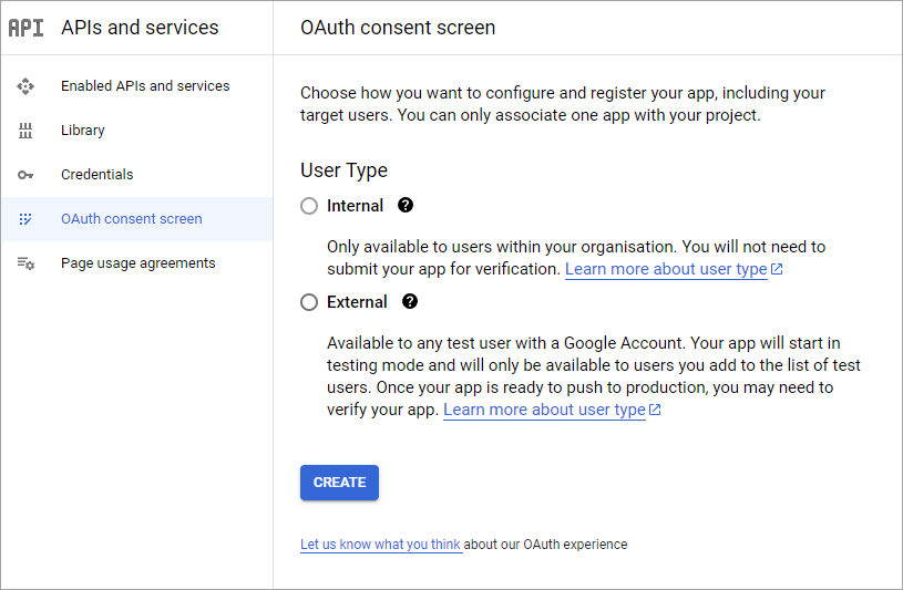 - Navigate to APIs and services > oAuth consent screen: