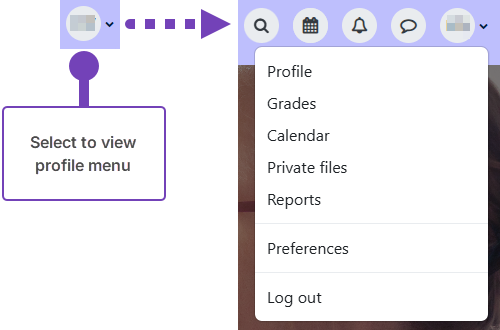 - Select your profile icon at the top right of the page to view the profile menu: