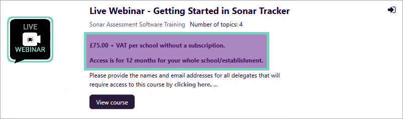 Within the Juniper Training Centre, e-learning courses for our software products are free for customers who are registered to use the product. Generally, you will have to pay to enrol in any of our other courses. Subscriptions are available that provide low-cost, whole-school access to courses in specific categories.