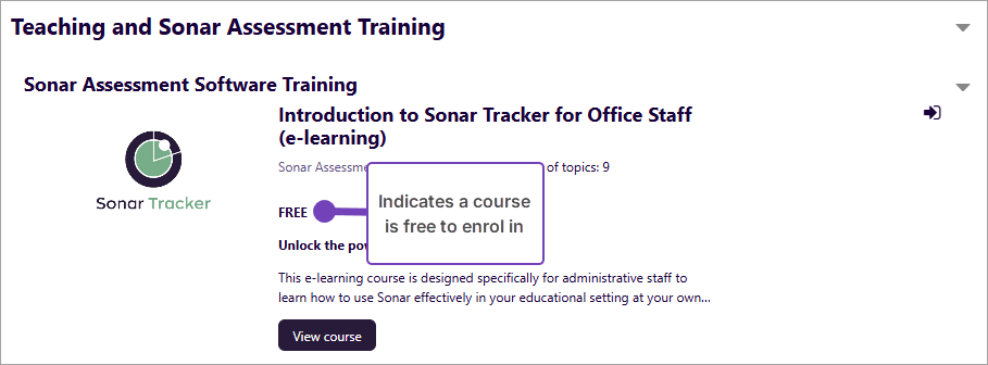 Courses are indicated as free when you view their details: