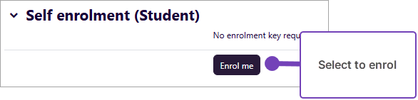 - Scroll down the page to the Self enrolment (Student) section and select Enrol me: