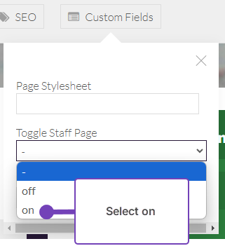 - Scroll to Toggle Staff Page and select On: