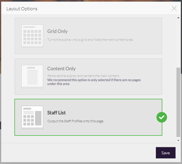 - Select the Staff Page option from the dropdown: