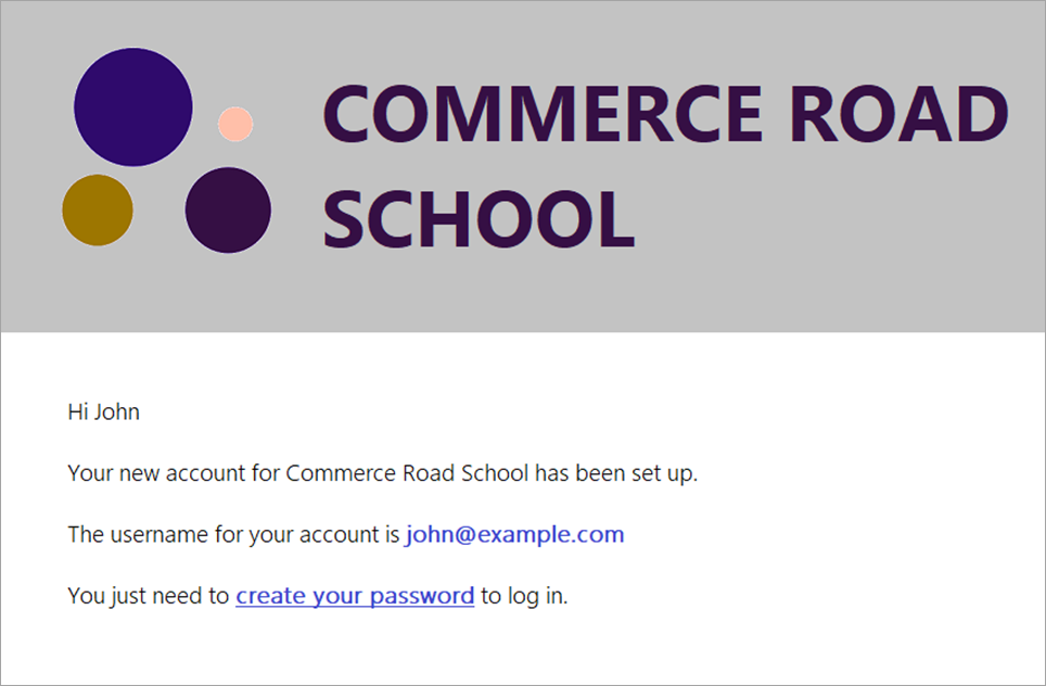 An email will be sent to parents asking them to set their password: