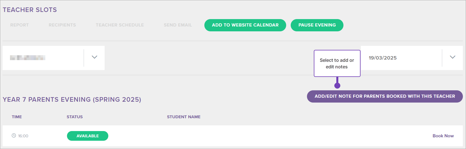 - You need to have purchased the Parents' Evening add-on.