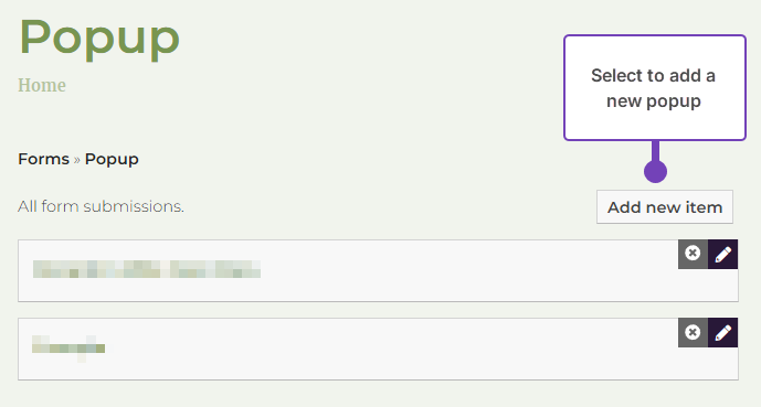 - Select Add new item (if you are only able to add a single message to your pop-up, you may not see this step):