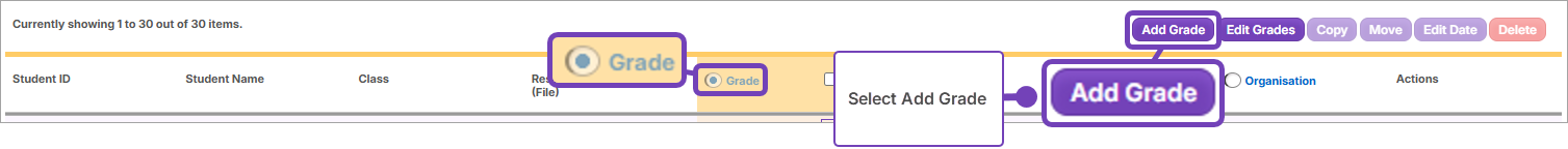 - Select Add Grade: