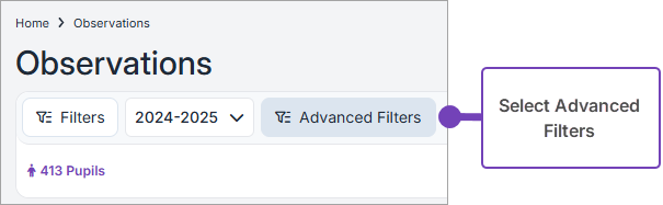 From the Observations page, select Advanced Filters: