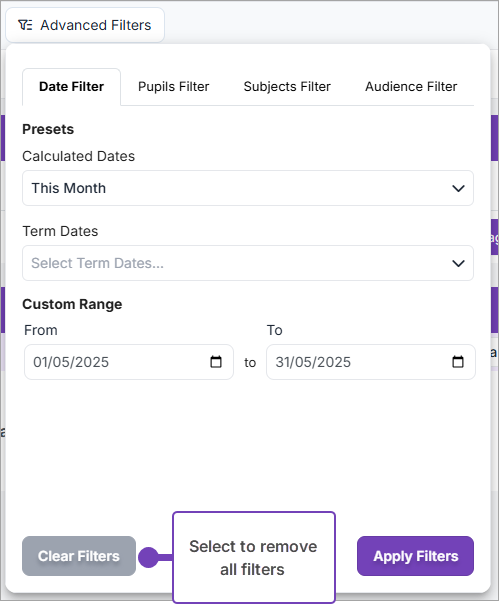 This article explains how to clear any Advanced Filters you have set when viewing observations.