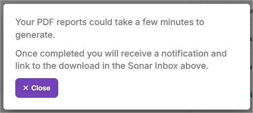 The reports are generated and a notification will be sent to your Sonar Tracker inbox. Select Click here to download from within the notification. Your reports will be saved to your downloads folder as a ZIP file. Unzip the file. There will be one PDF file for each pupil selected.