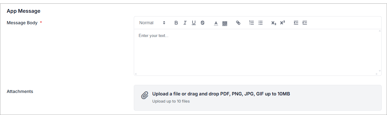 - Enter the contents of your App Message template into Message Body and format as required.