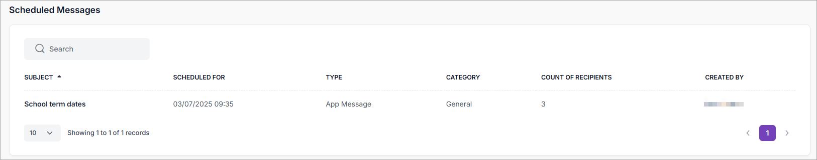 This article explains how you can view a list of the app messages, emails and text messages (SMS) scheduled to send to your contacts (including parents, pupils and staff) in the Scheduled window. You can see the message's title, when it's scheduled to be sent, the type of message, it's category,the number of recipients and who created the message.