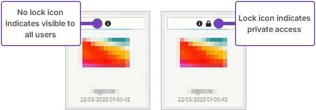 2. Private or restricted access images (for example, those shared with named people) can be inserted, but end users will not see them. Private images display a lock icon, restricted access files don't always, they may appear unlocked, but have restrictions. If your file has restrictions, you will be warned of this in Step 10 below.