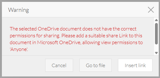 8. Select the image that you want to link to. If the image is private / has restrictions, a warning displays: