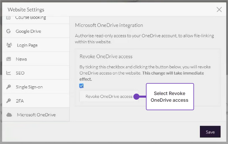 Follow these steps to revoke OneDrive access in Juniper Websites: