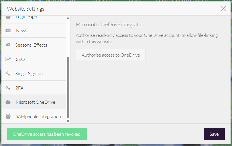 This article explains how to remove access to your school's OneDrive through your Juniper Website. When access is revoked, users will not be able to access content, for example, images or documents stored in your OneDrive.